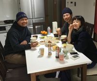 Rustono bersama dua artis Korea yang berkunjung ke rumahnya di Kyoto. Foto: Dok. Rusto's Tempeh